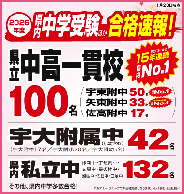 宇高宇女、地域トップ高校の他、首都圏中高、東大早慶に至るまで合格者を輩出する県内ナンバー1の合格実績