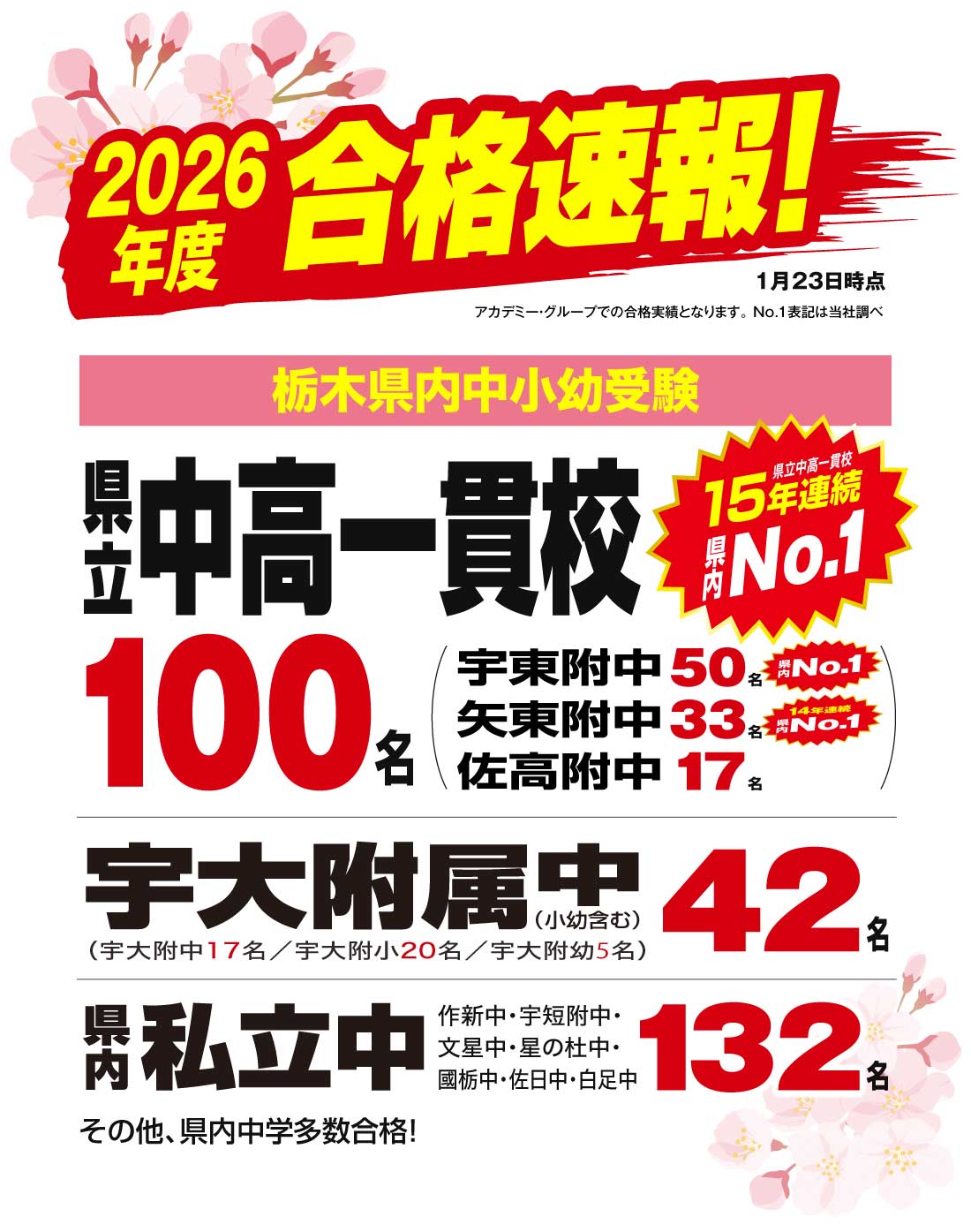 栃木県内最大のネットワークを誇り、50年に亘る地域密着型の進学塾としてお子様の小中高大学受験・進学を強力にサポート