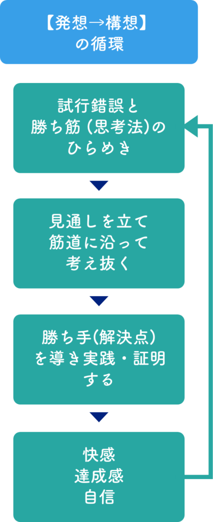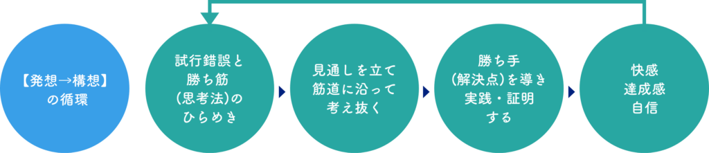 自ら考えて解決することの感動を繰り返し、発想→構想を習慣化します。