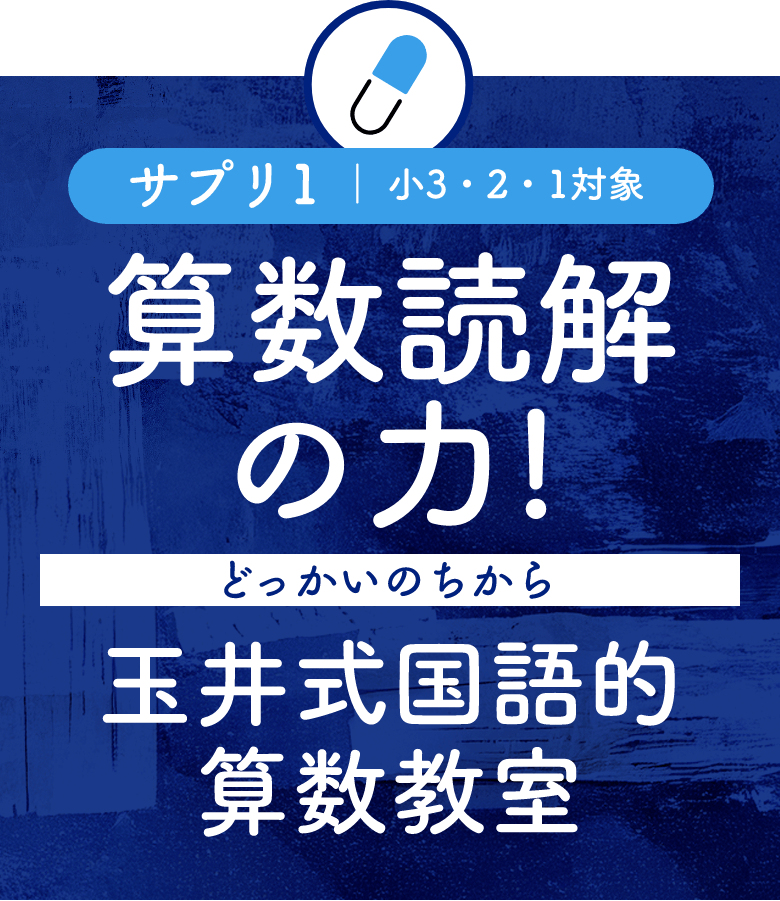 「玉井式国語的算数教室」 は、急速に全国へと広まっている今話題の英才教育メゾット。 長文と算数を組み合わせ、 高学年で学力差の元になる「文章で状況をイメージする力」を低学年のうちに養っていきます。 学校では決して受けられない授業内容で、「根底の学力である読解力とイメージング力」を9歳までに一気に身につけてしまいます。将来難関校の入試突破を目指すお子様にこそ、低学年のうちに受けていただきたいカリキュラムです。