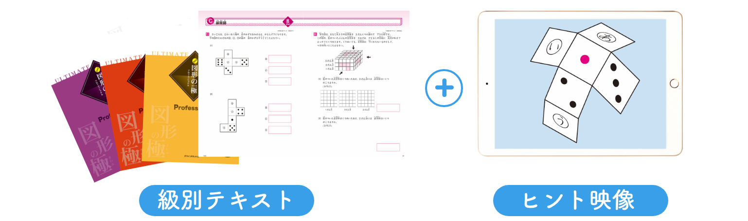 中学入試の学習で多くのお子様の悩みとなるのが「算数」です。 なかでも「図形分野」に対する苦手意識を持つ受験生はかなりの人数に上ります。「玉井式図形の極」では、級を基準にスモールステップアップで図形の学習を進めます。特に黒板やテキストでは理解しにくい立体図形・回転体・展開図など、映像による解説で子どもたちの理解を深めます。無理なく 「図形」を得意分野に変えていくことができます。