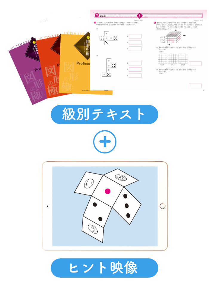 立体アニメーションで図形を「イメージする力」を高め、 公式に頼らない 【図形脳】を養成します。 進級式 (10級〜1級) で、一人ひとりの理解度に合わせ無理なく実力を身につけられます。 算数 (数学) を得意にすることは、 将来的に中学・高校受験を制するポイントに必ずつながります。