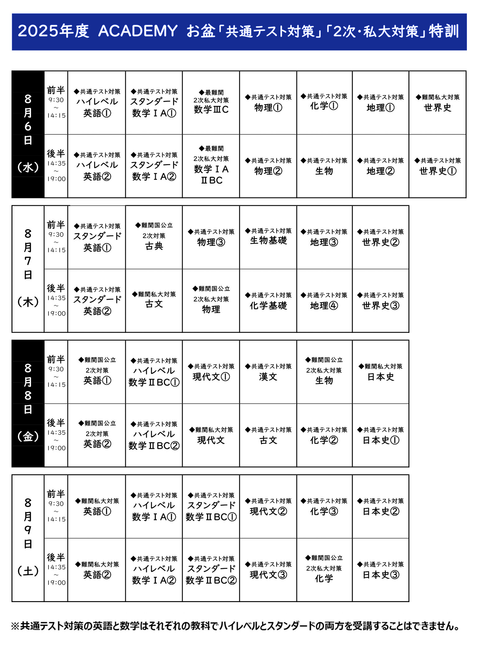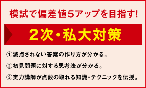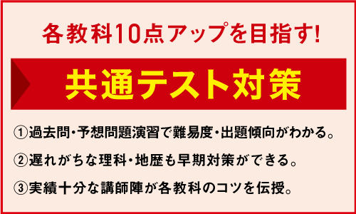 | 内容 | ①共通テスト対策 ②2次・私大対策 詳細は別途資料でご案内いたします |