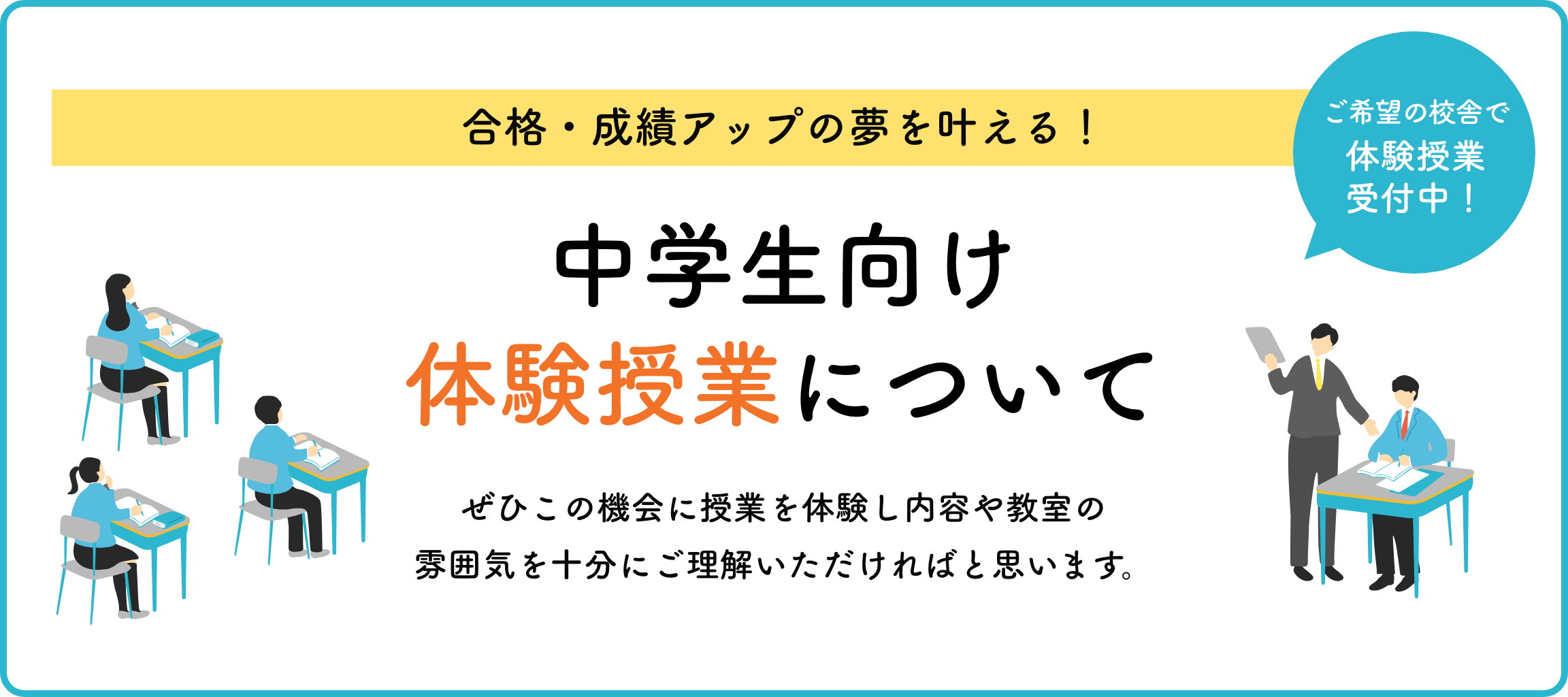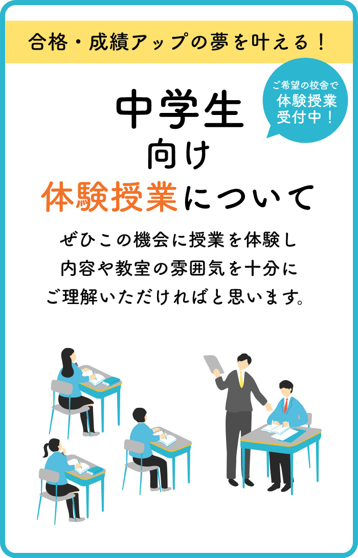 ご連絡させていただきました日時に校舎にお越しいただき、授業をご体験ください。