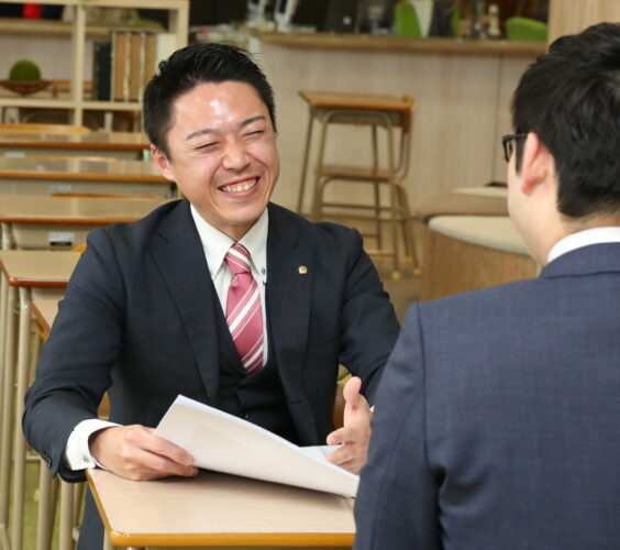 - 私たち校長が担うマネジメント業務の大切な要素の1つが「社員教育」です。特に新卒社員は、私もたくさん悩んだ経験があるのでしっかりとサポートできるよう心がけています。校長になってから、4人の新卒社員の先生と一緒に働いてきました。最近の新卒の方は本当に真面目で業務に真剣に取り組んでくれる人が多いと思います。同じときの私と比べると、ちょっと恥ずかしくなるくらいです(笑)。2人しかいないので授業の様子などもしっかりと確認できますし、文系・理系の違いがある場合は近くの校舎と連携して研修なども行っています。あとは相談しやすい雰囲気を意識的につくることも心がけています。
