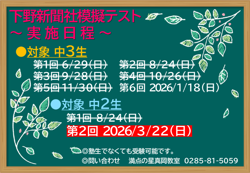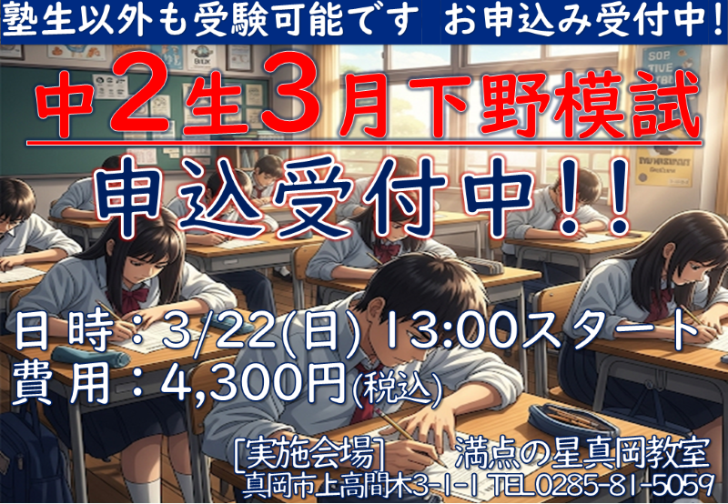 成績UP・第一志望校合格は満点の星真岡教室にお任せください!