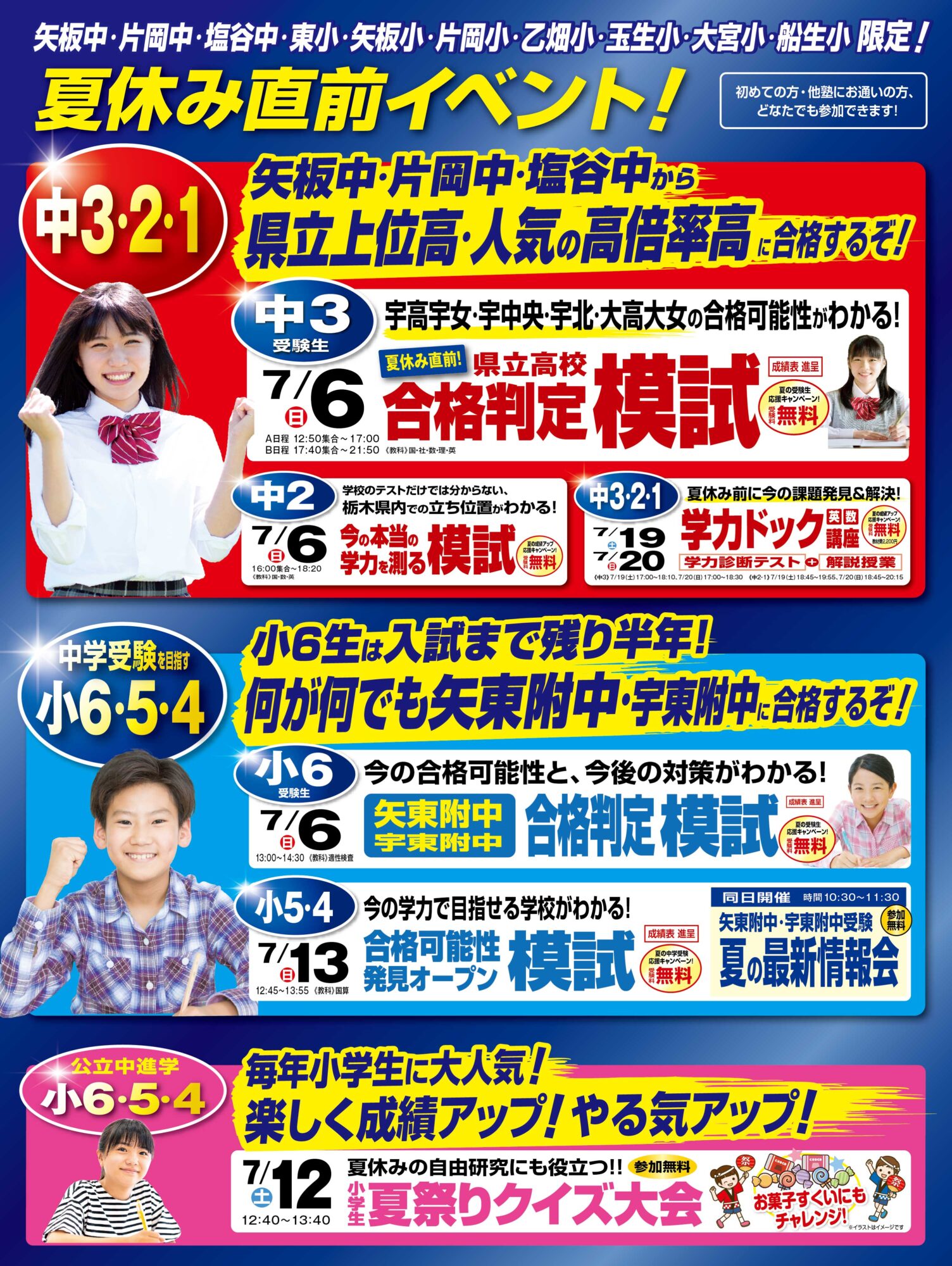 矢板校は、矢板・塩谷地域から県内トップ高・人気高、県立中高一貫校を目指す多くの小中学生にご通塾頂いている校舎です。