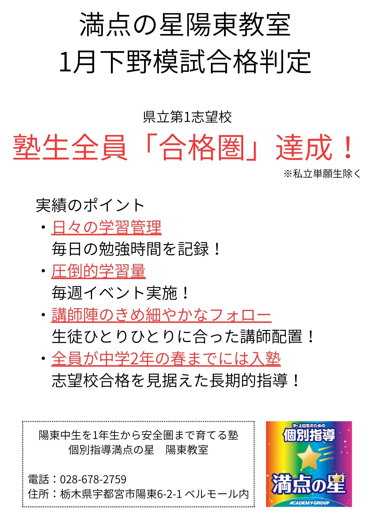 満点の星 宇都宮陽東教室について