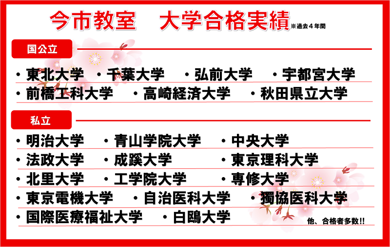 今市教室の大学合格実績