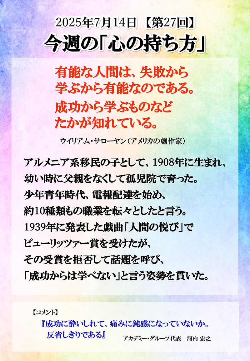 【第27回】有能な人間は失敗から学ぶから有能なのである。成功から学ぶものなどたかが知れている。