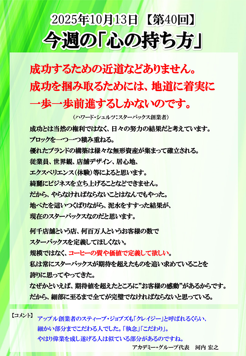 【第40回】成功するための近道などありません。成功を掴み取るためには、地道に着実に一歩一歩前進するしかないのです。